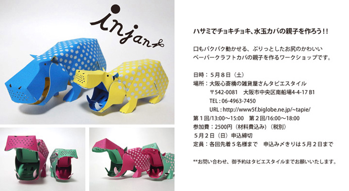 ハサミでチョキチョキ、水玉カバの親子を作ろう!!
