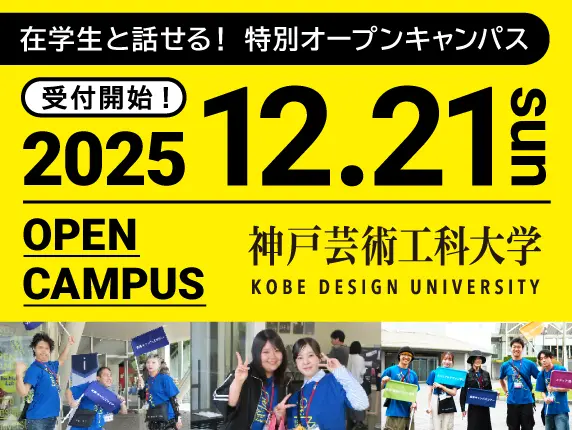 2025年12月21日(日)に「在学生交流オープンキャンパス」を開催いたします! 今回のオープンキャンパスは先輩のリアルな声が聞ける特別版!目玉プログラムは、神戸芸術工科大学の在学生と直接お話しできる「在学生交流会」です […]