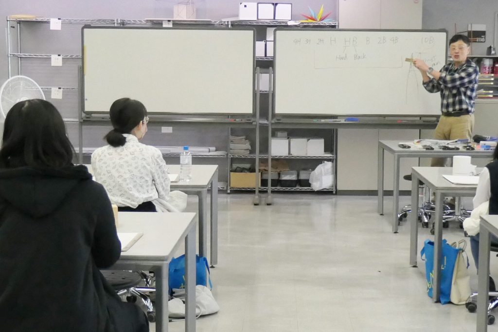 前半45分:「デッサンとは?」をテーマに、初めてデッサンをされる方へ講義を行います。