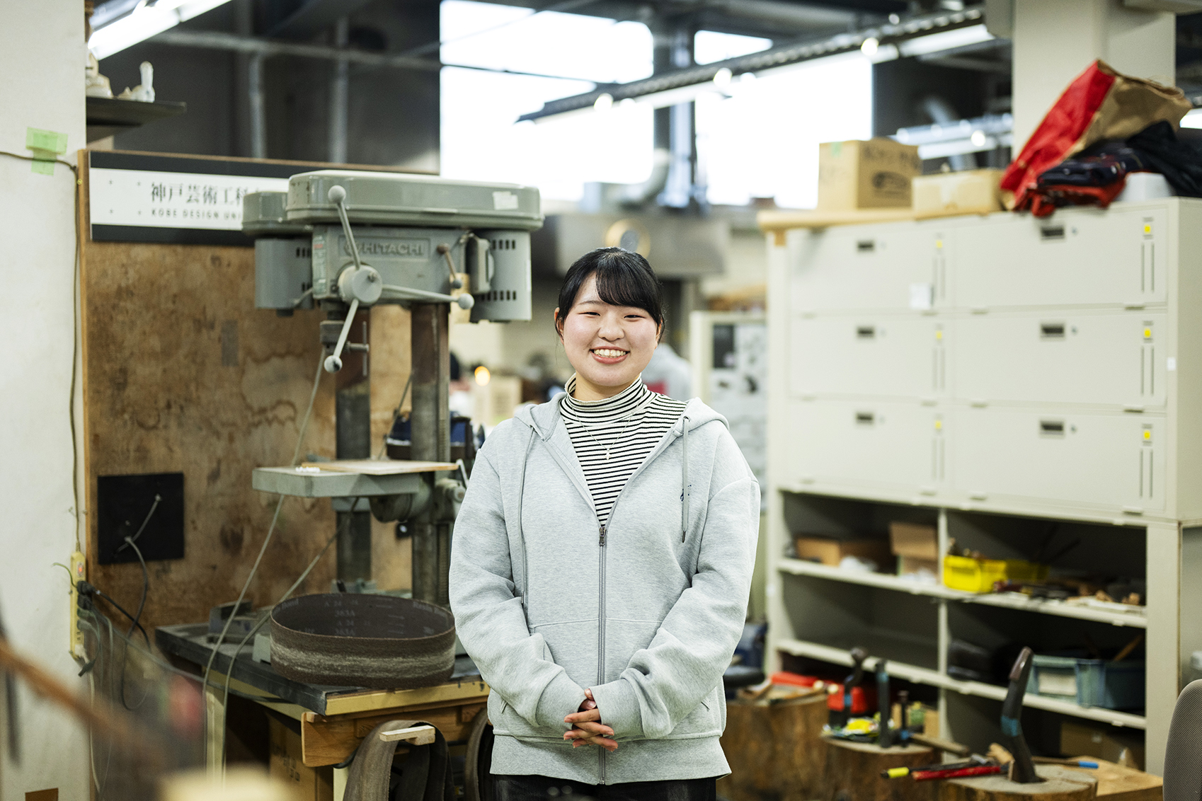 中学のときの美術部の顧問の先生が、神戸芸工大の卒業生でした。美術系の高校を目指すか普通科を目指すかで迷っていた私に、「大学から学んでも遅くないよ」「神戸芸工大、楽しかったよ」とお話してくださいました。先生のアドバイス通り、その後は普通科の高校に進学。その時点で、卒業後は神戸芸工大へ進むことを意識していたので、オープンキャンパスには5回ほど参加しました。