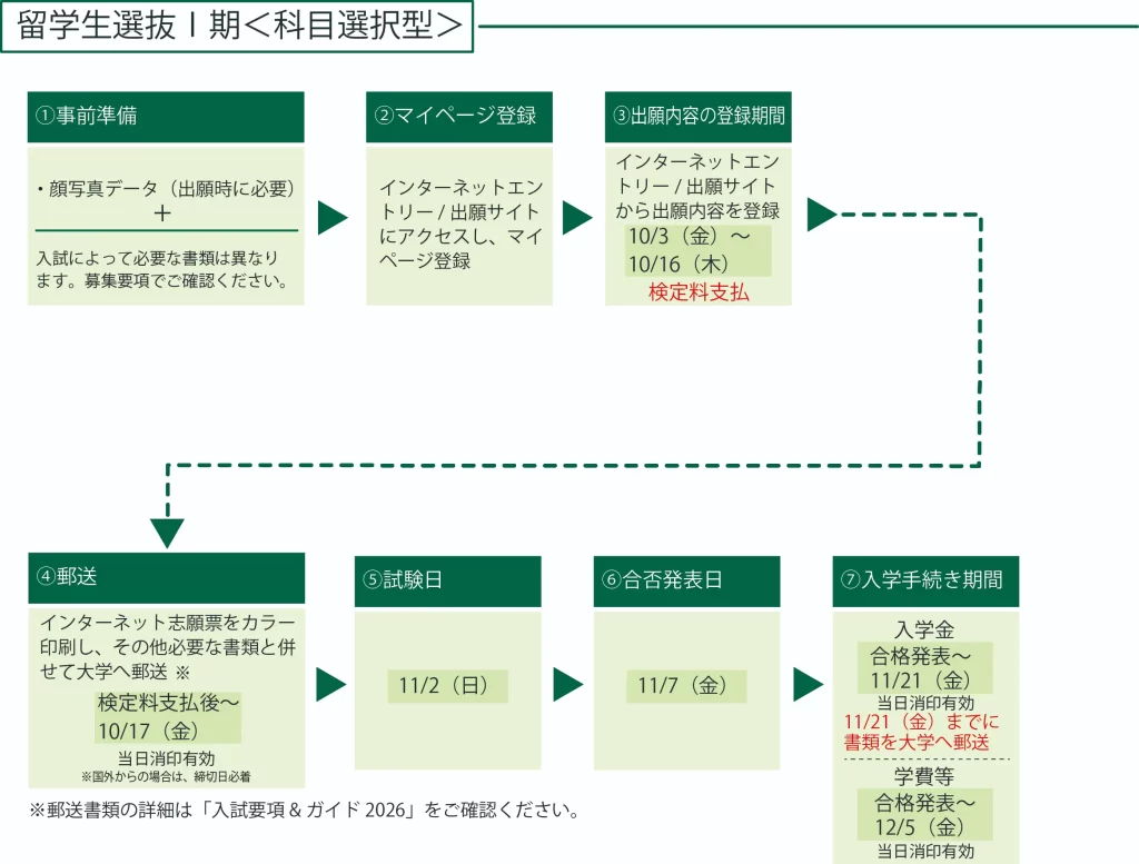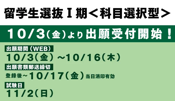 2025年10月3日(金)から、2026年度 留学生選抜Ⅰ期 <科目選択型>の受付を開始します。