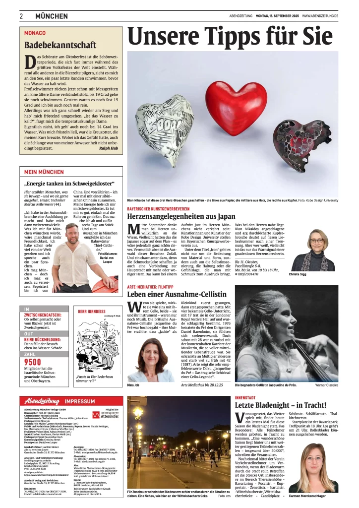 2025年9/5(金)よりドイツのミュンヘンにて開催されている、本学の在学生、卒業生、教員による展覧会「ICON.」がドイツのアーベンツァイトゥング・ミュンヘン(日刊紙)に掲載されました。