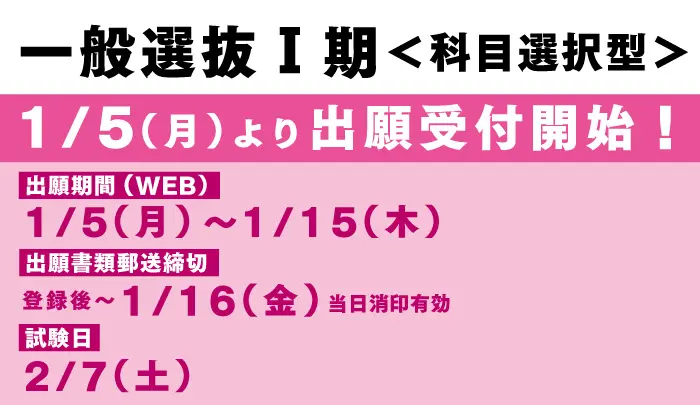 2026年1月5日(月)から、2026年度 一般選抜Ⅰ期 <科目選択型>のインターネット出願の受付を開始します。