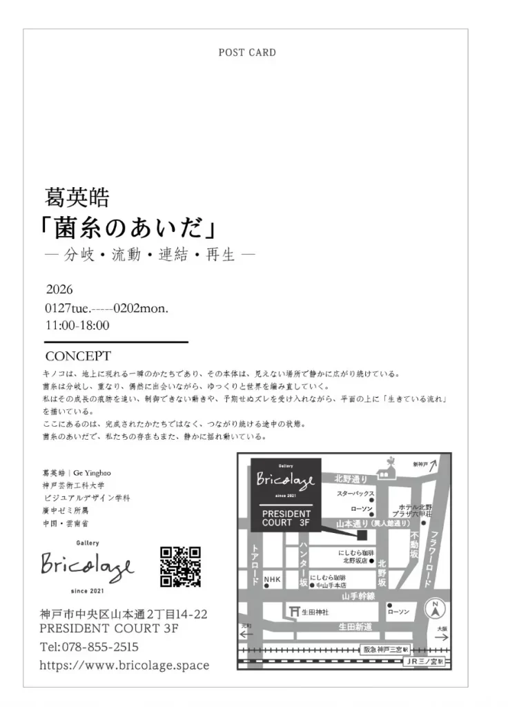本学のビジュアルデザイン学科所属のGe Yinghao(葛 英皓 カツ エイコウ)さんが1/27(火)から神戸市で個展を開催しております。