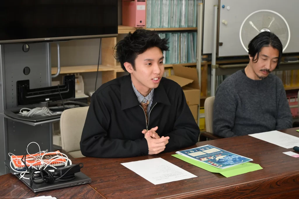 神戸芸術工科大学には畑友洋准教授が進学のきっかけでした。入学後は、授業や制作面でも自由度が高いカリキュラムで色々な経験ができたことが大きいです。学生の有志で学科棟にギャラリー空間を創出しましたが、普段の模型づくりでは100分1など縮小したスケールでの制作となりますが、実際のスケールで空間を演出できたことは刺激になりました。そういった経験が生かされたと思います。