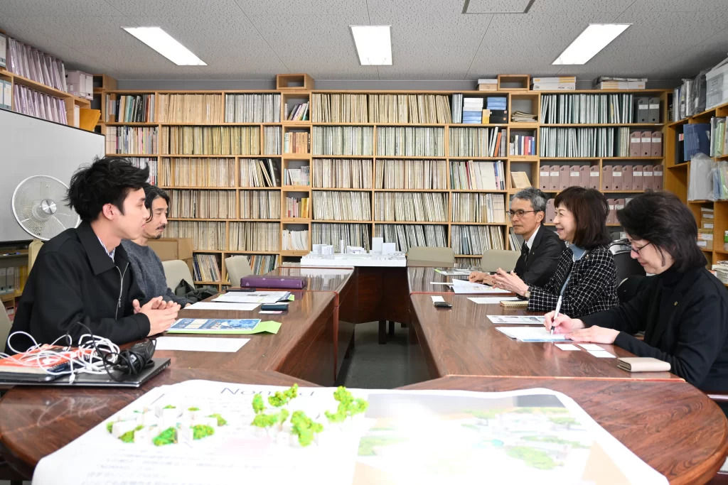 受賞に際し、公益財団法人兵庫県建築士会の関係者の皆様が本学を訪問され、川向さんへ激励のお言葉が贈られました。審査では、模型作品の完成度に加え、プレゼンテーション力や質疑応答での的確な対応も高く評価され、審査員全員一致で最優秀賞が決定したことが紹介されました。