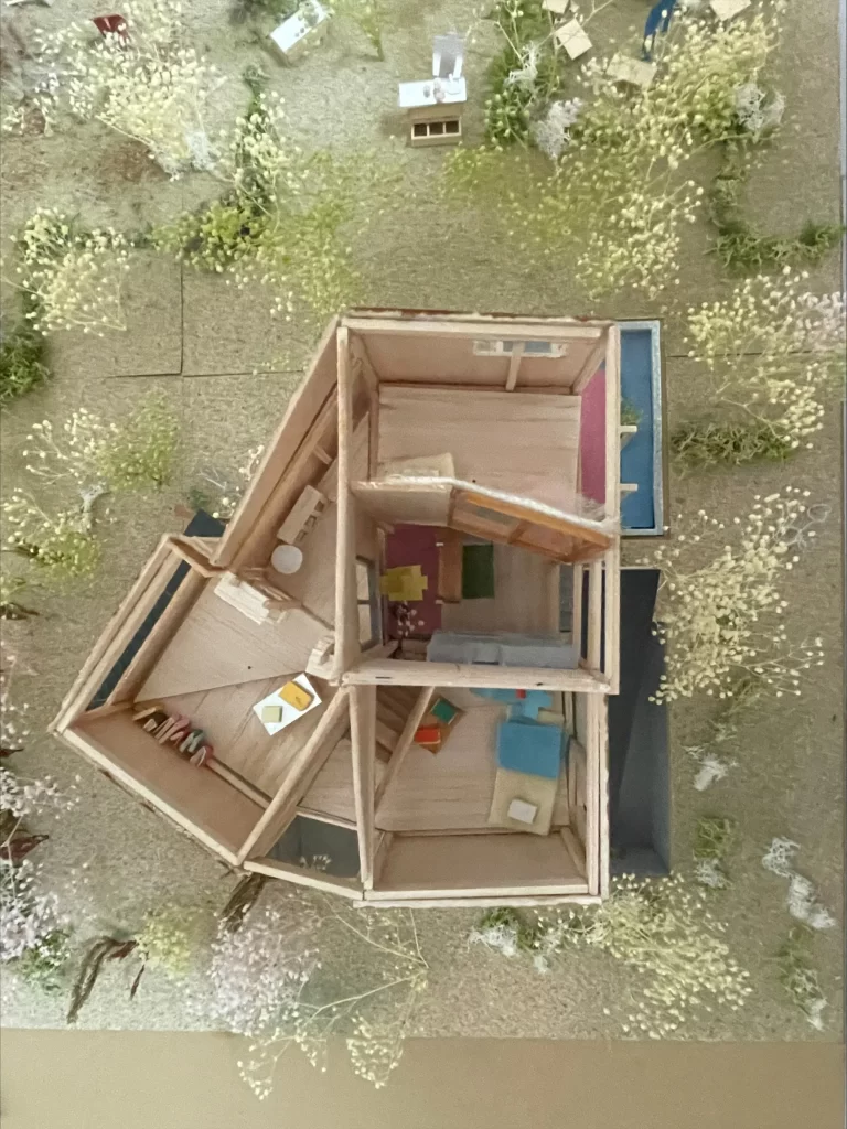 コンペに応募した模型は、最小限の中で効率的に空間をつくりだすことを意識しました。他の出展者と比較するとコンパクトなサイズでしたが、狭いけれど、広い住宅を作りたいという思いを込めて考えた案が評価されてうれしいです。